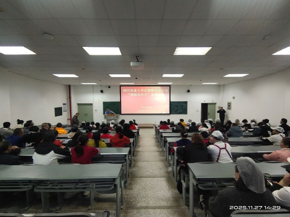 为深入贯彻“全民消防,生命至上——安全用火用电”主题,后勤服务总公司于2025年11月27日、12月12日分别在成都、雅安两校区组织开展消防培训活动。餐饮服务一科、餐饮服务二科、商务服务中心、汽车队等300余名职工积极参与,培训成效显著。