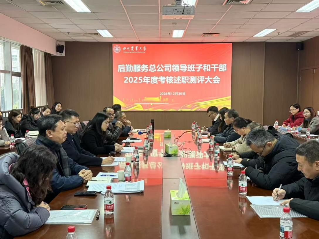 12月30日下午,后勤服务总公司2025年度处级领导班子及干部述职考核测评大会在成都校区图书馆一楼会议室顺利召开。副校长李德海出席会议并讲话,公司处级干部、科级干部、管理人员及职工代表等51人参会,会议由公司党总支书记蒋颖主持。